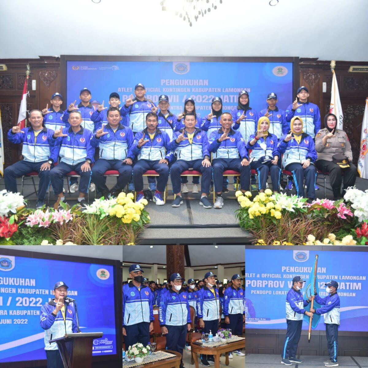 Mengukuhkan serta memberangkatkan secara resmi atlet dan official kontingen Lamongan Selasa (14/6) di Pendopo Lokatantra, Bupati Lamongan Yuhronur Efendi menitipkan harapan agar cabang olahraga di Kabupaten Lamongan dapat semakin moncer dan megilan.