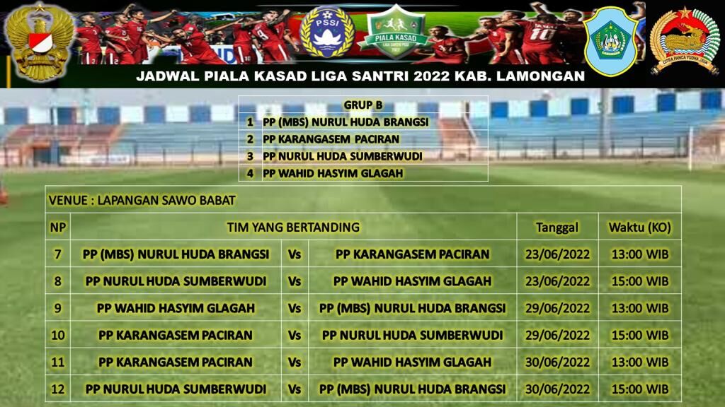 Jadwal Fase Grup Piala Kasad Liga Santri 2022 Kabupaten Lamongan.