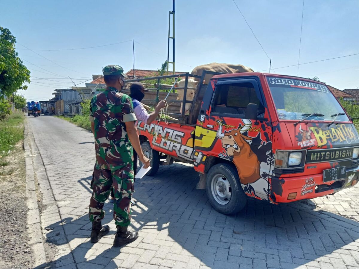 Seperti halnya yang dilakukan petugas gabungan di Kec Solokuro dalam menyeterilkan serta mengecek Surat Keterangan Kesehatan Hewan (SKKH) dan sapi tidak boleh berasal dari zona merah demi penanggulangan wabah penyakit mulut dan kuku (PMK) yang sudah masuk wilayah kab. Lamongan. Minggu 10/07/2022