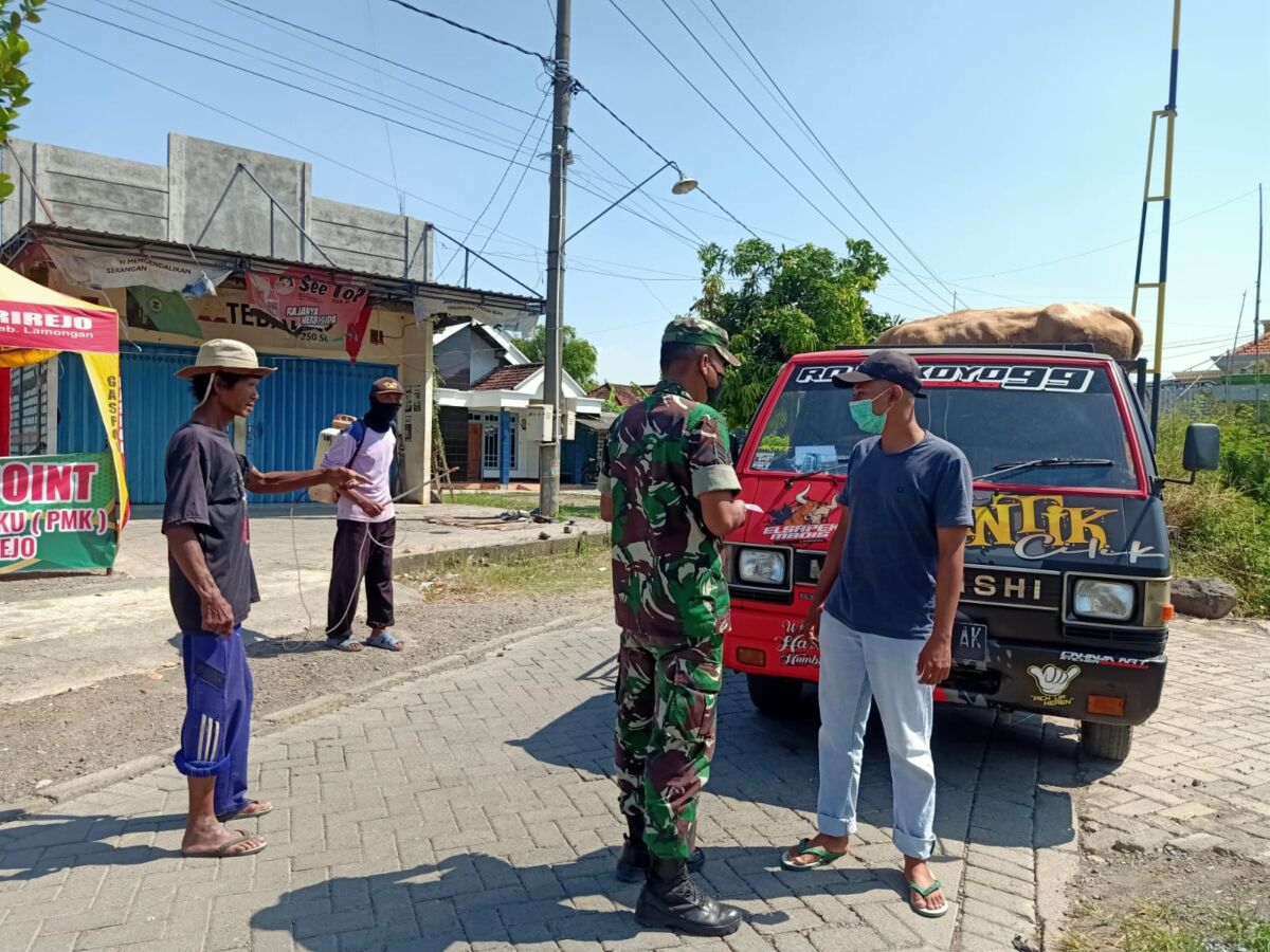Kabar1Lamongan.com -Sejumlah petugas gabungan TNI Polri jajaran Kodim 0812 Lamongan dan Polres Lamongan bersama dinas peternakan Kab Lamongan melakukan penyemprotan disinfektan di Pos Check Point PMK kepada pengendara pengangkut hewan ternak.