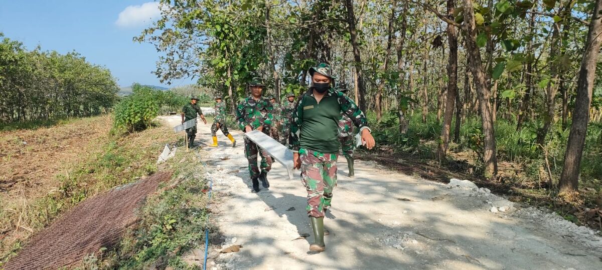 Kabar1lamongan.com – Mengejar target proyek fisik Pra TMMD ke-114 di Desa Tunggunjagir Kecamatan Mantup Kabupaten Lamongan, Satgas Pra TMMD kodim 0812 Lamongan dan warga mulai memasang besi bekisting untuk program pengecoran jalan penghubung Dusun Tunggun ke Dusun Glendeh Desa Tunggunjagir kec Mantup Kab Lamongan. Minggu (17/07/2022)