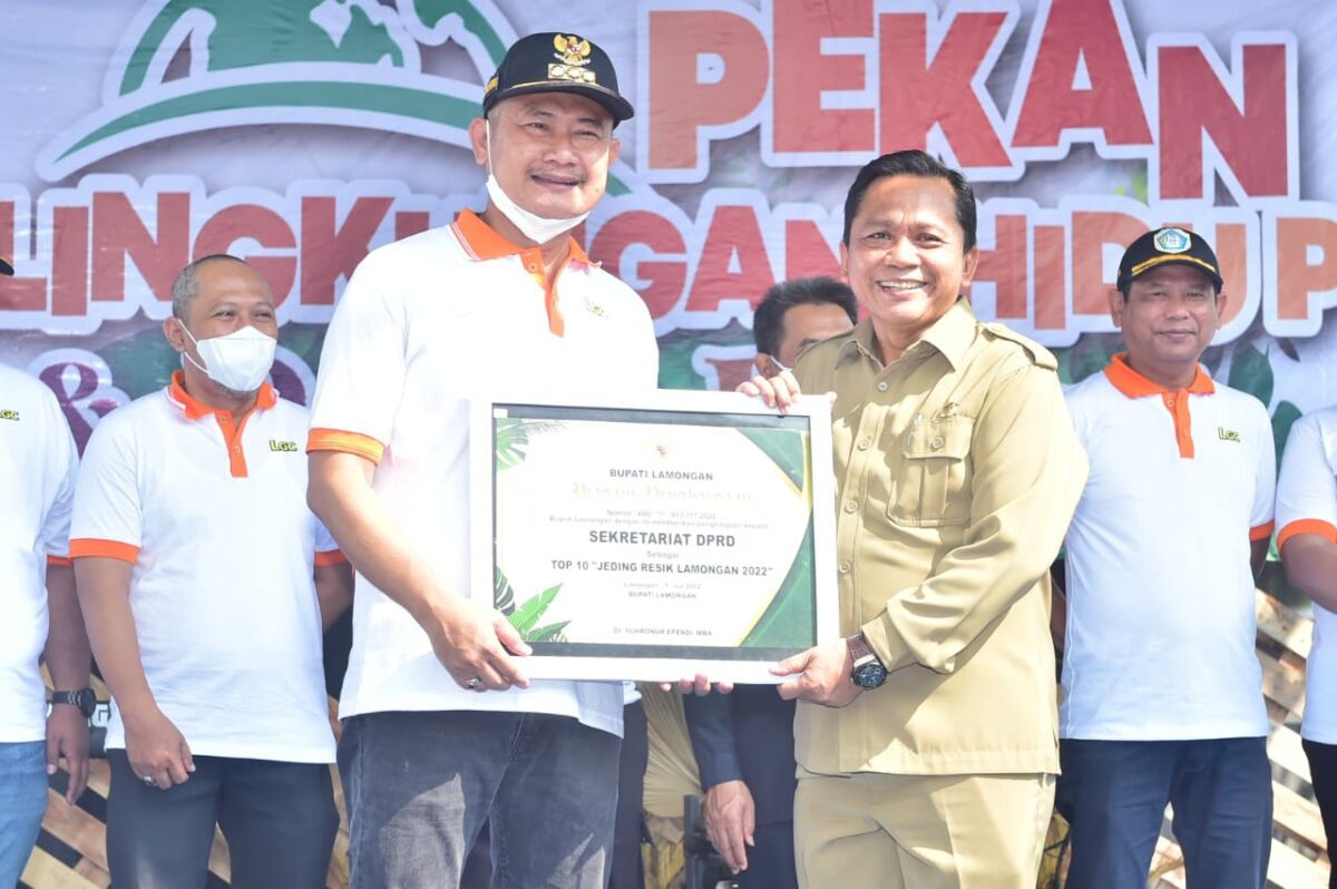 Pada kesempatan tersebut, Pak Yes memberangkatkan armada truk penertiban sampah yang akan menertibkan pembuangan sampah liar di wilayah Kabupaten Lamongan, sebagai bentuk keseriusan Pemkab Lamongan dalam pengelolaan sampah. Selain itu, beliau juga menyerahkan penghargaan lingkungan tahun 2022 kepada 10 sekolah adiwiyata, 8 RT LGC community center, 7 LGC RT kencana, 10 LGC RT mandiri, 4 LGC RT maju, 2 LGC RT berkembang, 3 LGC RT perintis, dan top 10 jeding resik OPD.
