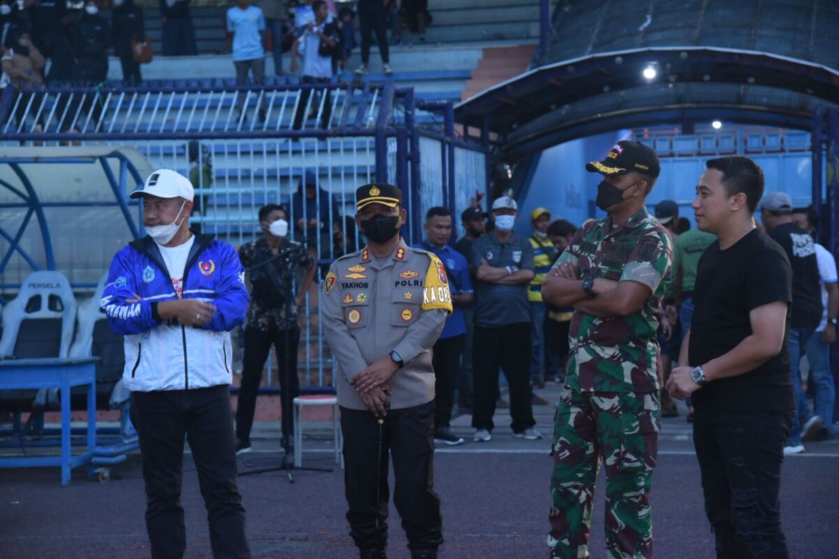 Apel Pengamanan dengan ratusan personel baik Polri maupun TNI digelar pukul 13.30 wib, dilanjutkan dengan Penjelasan Tactical Floor Game (TFG) Strategi Pengamanan Pertandingan.