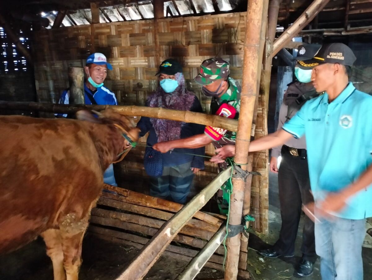 Penanganan PMK, Babinsa Sumengko Dampingi Dinas Terkait Dalam Vaksinasi Hewan Ternak Sapi