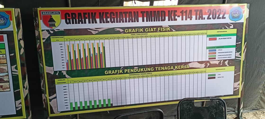 “Ini sebagai informasi kepada masyyarakat secara umim. Bahwa pengerjaan TMMD ke-114 di Desa Tunggunjagir berjalan dengan maksimal. Itu terbukti dengan lapiran hingga memunculkan grafik ini,”terang Dansatgas TMMD ke-114 Letkol Kav Endi Siswanto Yusuf