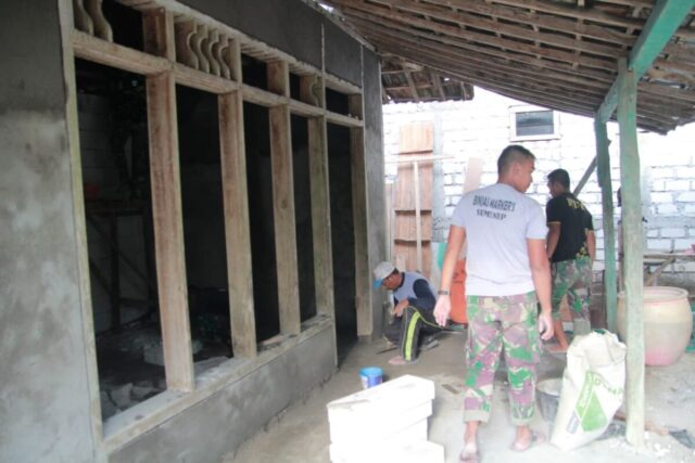 Kabar1Lamongan.com – Anggota Satgas TNI Manunngal Membangun Desa (TMMD) ke114 terus bersemangat membantu mewujudkan warga yang tidak mampu untuk memiliki rumah tinggal yang layak huni.