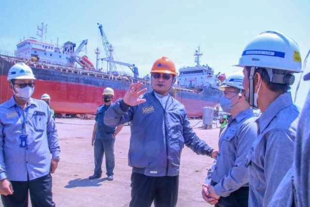 Bersama perwakilan manajemen PT DPL, Zacharia Santoso dan Abdul Hamdan, Perwakilan PT Meratus Line, Pak Yes berkeliling melihat secara langsung proses konstruksi kapal di PT DPL.