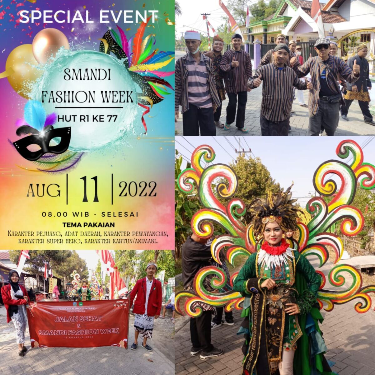 Sebelumnya acara Smandi Fashion Week ini di buka langsung oleh Sofyan Hadi selaku PLT Kepala Sekolah SMA Negeri 1 Sukodadi, dan diharapkan semua siswa-siswi bisa mempunyai semangat juang dan memeriahkan HUT RI ke 77.