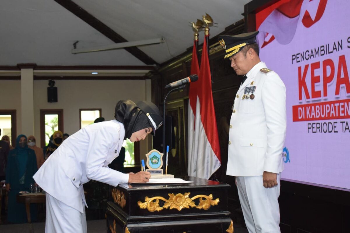 Kabar1lamongan.com – Sebanyak 60 Kades hasil pemilihan Kepala Desa (Pilkades) serentak 2022 yang berlangsung 26 Juli 2022 lalu dilantik dan diambil sumpahnya oleh Bupati Lamongan Yuhronur Efendi pada Jumat (12/8) di Pendopo Lokatantra Lamongan.