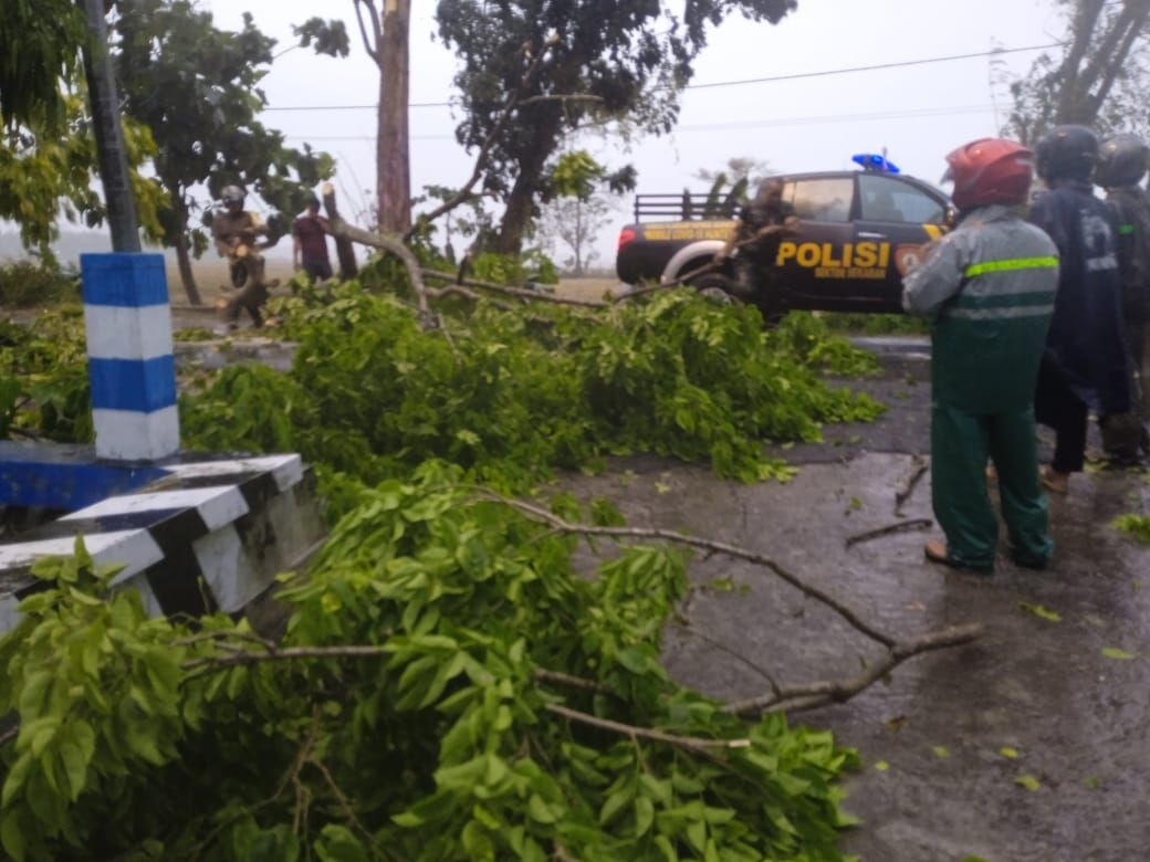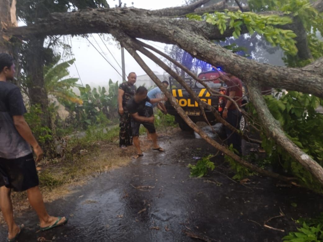 Akibat cuaca yang ektrim tidak hanya menyebabkan pohon tumbang, kejadian tersebut sudah diatasi dengan gotong-royong bersama pemerintah Desa dan masyarakat serta dibantu Babinsa setempat.
