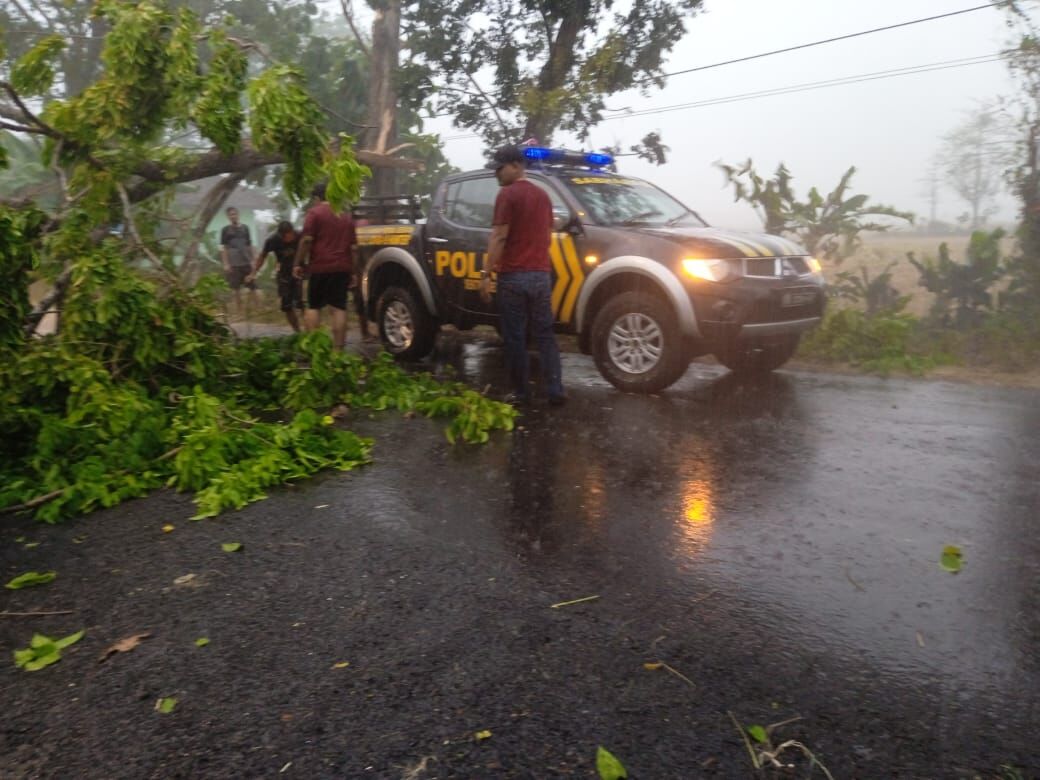 Akibat cuaca yang ektrim tidak hanya menyebabkan pohon tumbang, kejadian tersebut sudah diatasi dengan gotong-royong bersama pemerintah Desa dan masyarakat serta dibantu Babinsa setempat.