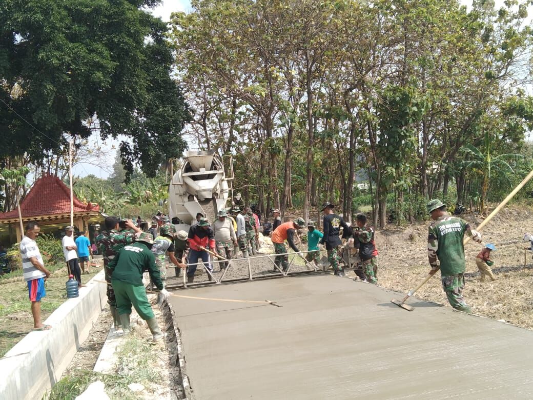 Salah satunya di pembangunan jalan sepanjang 1625 Meter dan dengan tinggi 0,20 Meter dengan lebar 3 meter. Di kegiatan ini, tampak sejumlah personil dari satgas TMMD, dengan dibantu sejumlah warga, desa Tunggunjagir terus kebut pekerjaan.