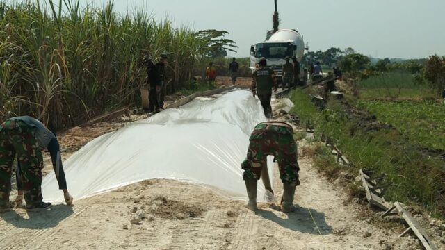 Dalam TMMD kali ini,” setiap harinya, personel satgas TMMD ke114 Kodim 0812 Lamongan bersama masyarakat bergotong-royong melaksanakan pengecoran jalan di Desa Tunggunjagir Kecamatan Mantup, Kabupaten Lamongan.