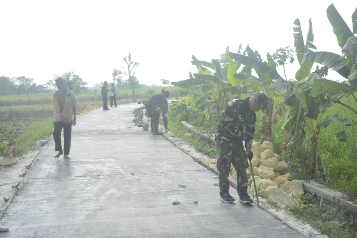 Kabar1Lamongan.com -Pengecoran jalan sasaran fisik TMMD Reguler ke-114 Kodim 0812/Lamongan di Desa Tunggunjagir Kecamatan Mantup Kabupaten Lamongan dalam pengerasa dan finishing. Terlihat anggota Satgas TMMD Kodim 0812/Lamongan bersama warga mulai melepaskan papan mal pengecoran jalan (bekisting)secara bertahap.