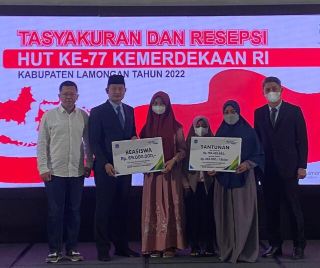 Kepala BPJS ketenagakerjaan yang juga menghadiri kegiatan tersebut, dalam Peringatan HUT RI ke 77 malam Tasyakuran dan Resepsi di pendopo lokatantra, kabupaten lamongan pada kesempatan tersebut juga menyerahkan santunan secara simbolis kepada ahli waris Non ASN, GTT/PTT dan Bank Daerah Lamongan yang mengikuti program Peserta BP Jamsostek.