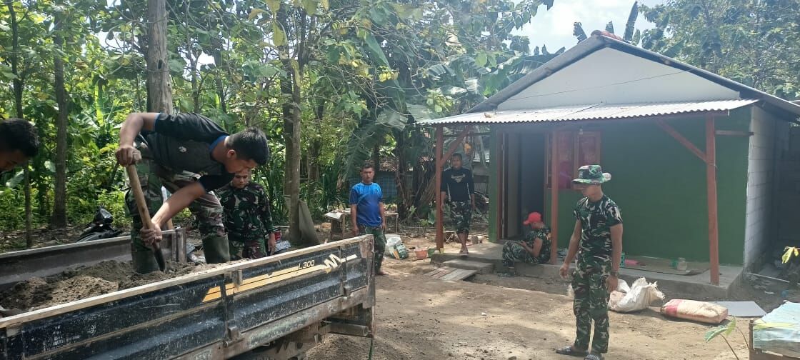 Disatu lokasi dimana tempat material pasir ditimbun untuk merehap Rumah Tidak Layak Huni (RTLH) yang disiapkan oleh Kapten Arm Yudi K selaku koordinator lapangan. Tanggung jawab sebagai koordinator lapangan salah satunya yaitu menyiapkan bahan material untuk pembangunan infrastruktur diwilayah desa ini.