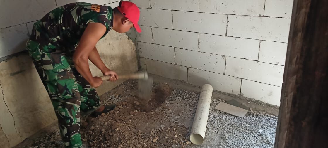 TNI Satgas TMMD 114 Kodim 0812 Lamongan Pasang Pipa Saluran Pembuangan Program Jambanisasi