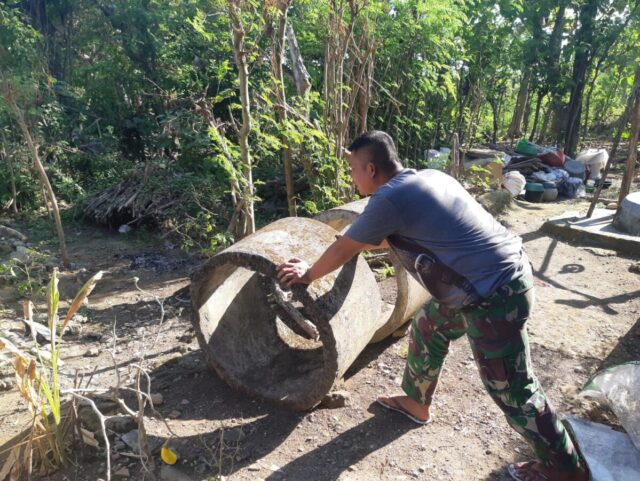 Kabar1Lamongan.com – secara manual anggota Satgas TMMD dorong material berupa buis beton atau cincin gorong-gorong ke titik sasaran TMMD ke-114 Kodim 0812 Lamongan di lokasi pembangunan jambanisasi.