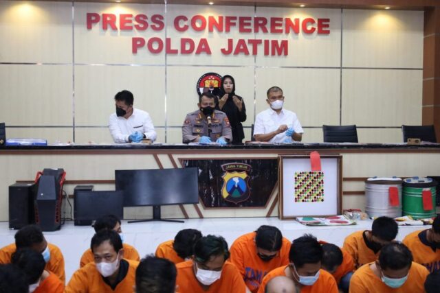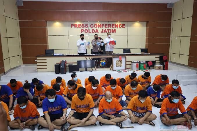 “Total Tersangka yang diamankan sebanyak 500 orang, untuk Ditreskrimum 261 LP, dengan 429 tersangka, sedangkan Ditreskrimsus 66 LP, dengan 71 tersangka, mereka diamankan mulai bulan Januari sampai pertengahan Agustus 2022, para tersangka terlibat perjudian online, perjudian togel, perjudian dadu, perjudian slot dan perjudian bola,” kata Kabid Humas Polda Jatim, Kombes Dirmanto, pada Selasa (20/8/2022).kemarin.