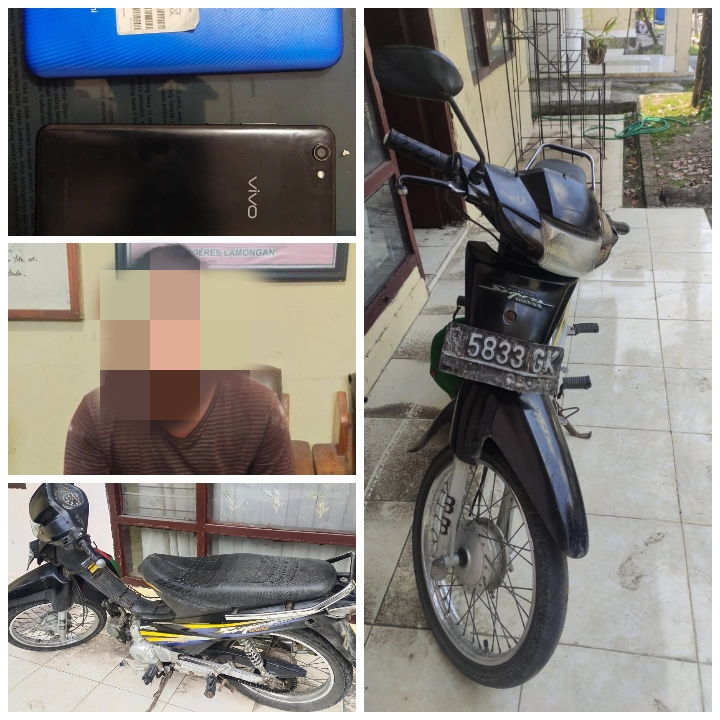 Pelaku berinisial BS (37) Alamat Desa Porodeso Kecamatan Sekaran Kabupaten Lamongan berhasil diamankan tanpa perlawanan dan beserta barang bukti berupa HP Redmi 9C warna biru milik korban, HP Vivo warna hitam milik pelaku, satu unit sepeda motor honda supra NoPol R-5833-GK.