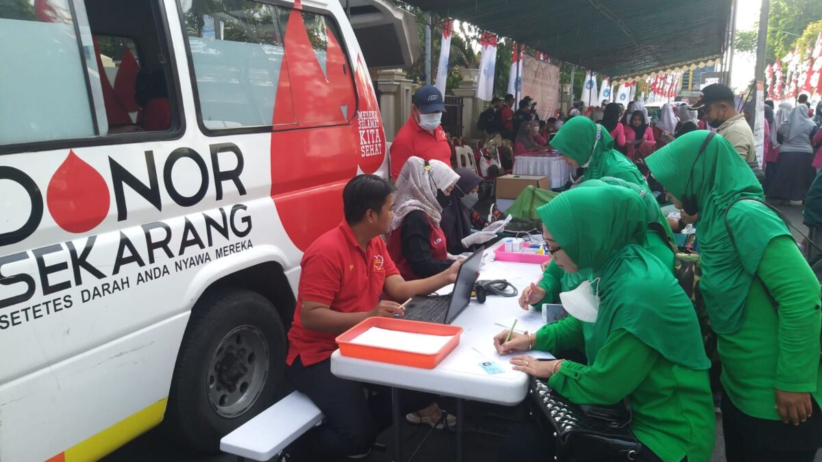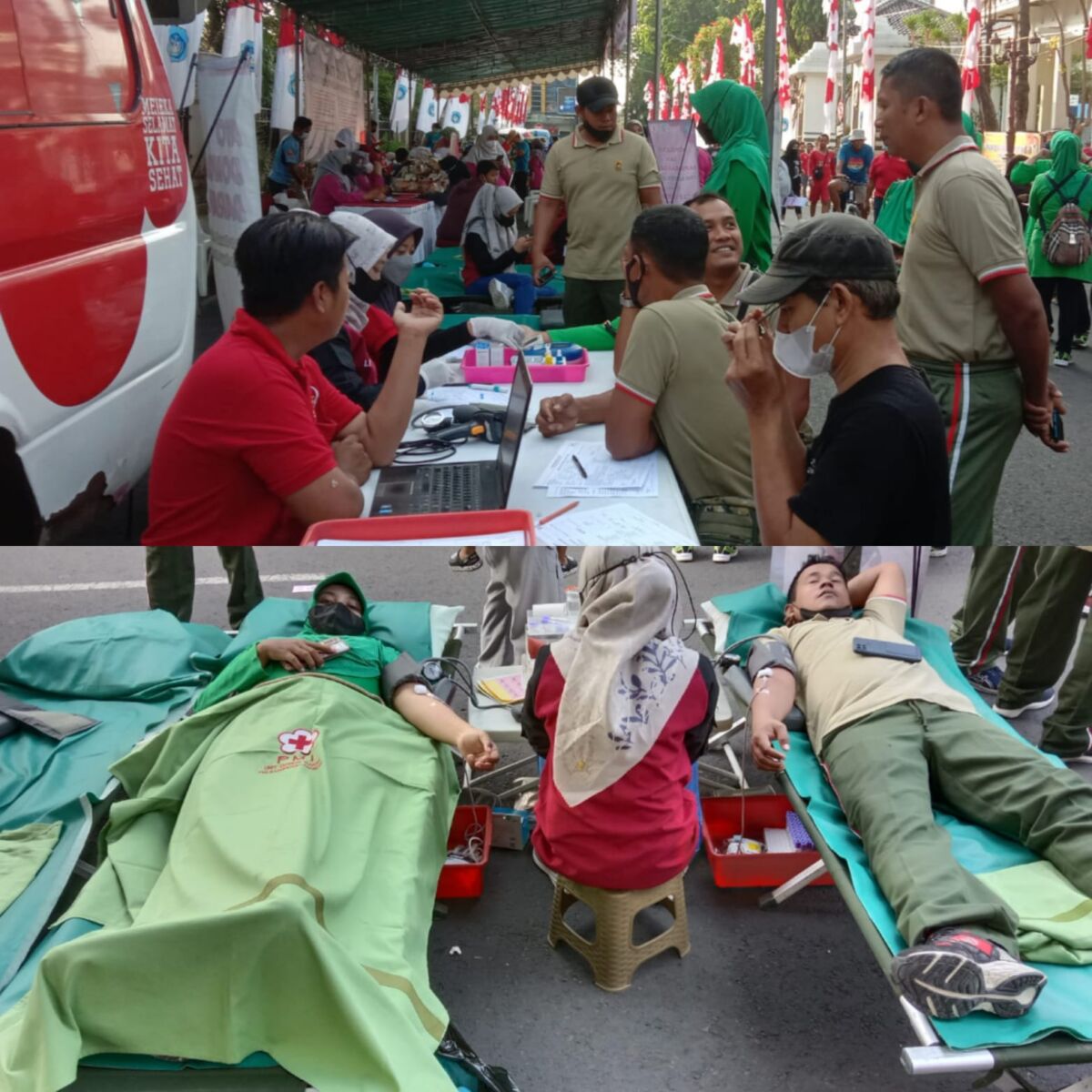 Kabar1Lamongan.com -Dalam rangka memperingati HUT Ke-77 Kemerdekaan RI Tahun 2022. kodim 0812/Lamongan menggandeng PMI Cabang Lamongan dan Poskes Kodim 0812/Lamongan dalam rangka menyelenggarakan kegiatan bhakti sosial donor darah yang Diikuti anggota TNI, Persit KCK cabang XXVII Kodim 0812 Lamongan dan masyarakat. Minggu (28/08/2022)