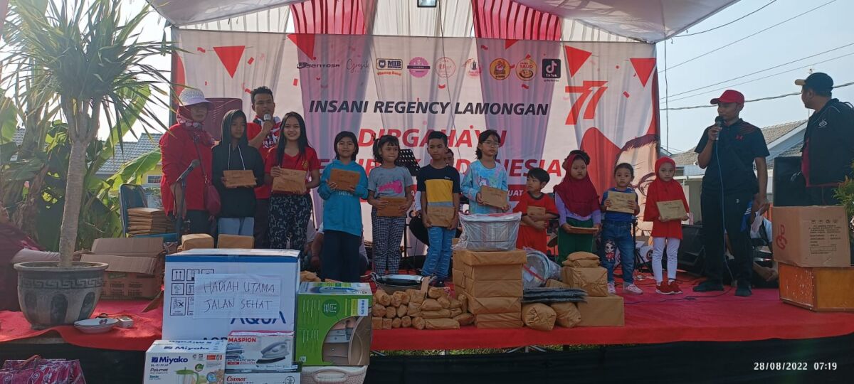 Kabar1lamongan.com – Dalam rangka memeriahkan HUT Kemerdekaan RI ke 77, ratusan warga perumahan Insani Regensy Desa Sumberjo,Kec Lamongan antusias mengikuti jalan santai dan lomba yang digelar pada Minggu, 28/8/2022.
