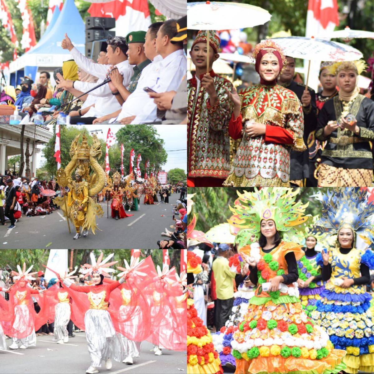 Diwarnai penampilan unik dan menarik, ribuan warga tumplek blek dalam kemeriahan Megilan Karnaval (MegKarnaval) Lamongan dalam rangka memperingati HUT ke-77 Kemerdekaan Indonesia.