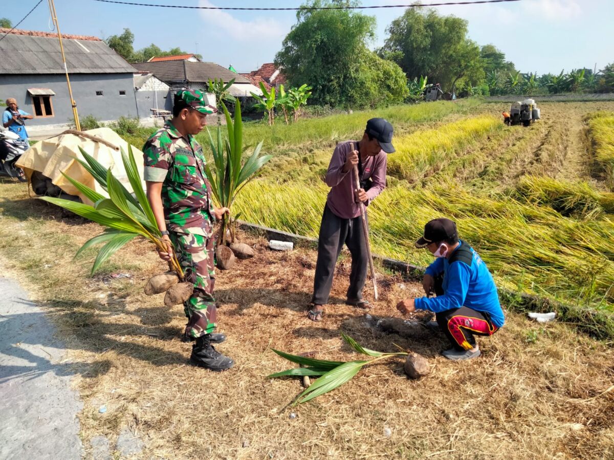 “Kami bersama Kepala Desa Pasi dan warga melakukan gotong-royong menanam pohon Kelapa” kata Babinsa Koptu Suliswanto.