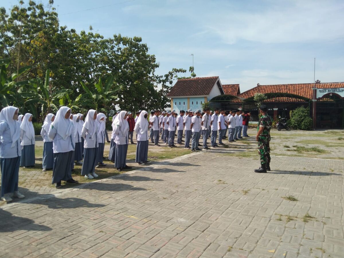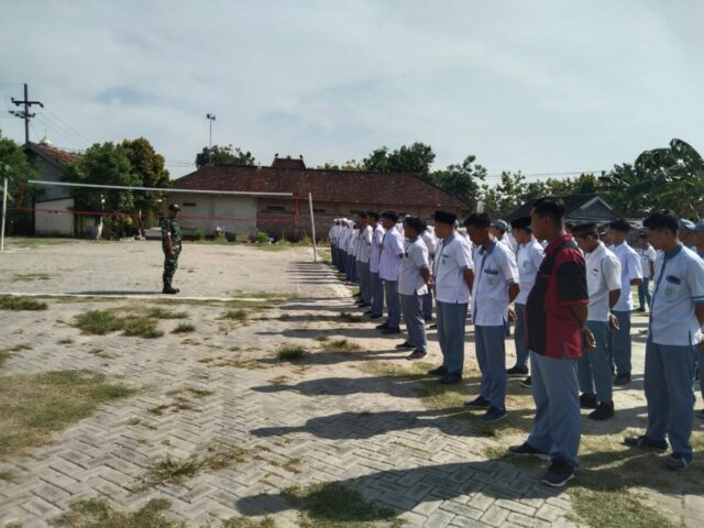 Tanamkan kedisiplinan, Babinsa Koramil 0812/11 Kedungpring Latih PBB Siswa SMK NU Kedungpring