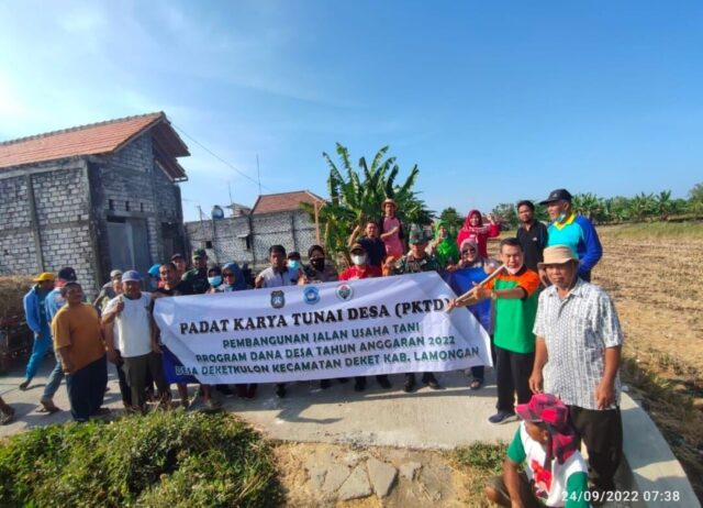 Kabar1Lamongan.com – TNI bersama masyarakat desa Deket Kulon bergotong-royong melaksanakan Program “Padat Karya Tunai Desa” melalui pemadatan jalan guna yang di bangun untuk memperlancar proses aktivitas pertanian masyarakat desa Deket Kulon kecamatan Deket Kabupaten Lamongan. Sabtu (24/09/2022)