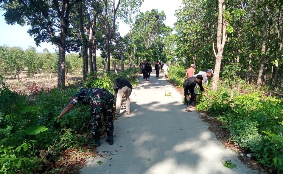 TNI Babinsa Ajak Masyarakat Kerja Bakti Bersihkan Jalan Dari Rumput Dan Ranting Agar...