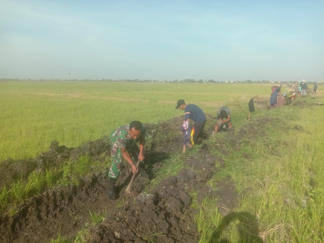 Di Lokasi yang sama terlihat Babinsa Koptu Imam Sutarno dan Bhabinkamtibmas bahu membahu dengan warga. Dirinya menuturkan bahwa babinsa akan selalu hadir di tengah warga. “Saya selaku Babinsa Desa Poro Deso, akan selalu hadir di tengah warga guna membantu dan memberi motivasi kepada masyarakat. Apalagi di kegiatan kegiatan seperti ini.” Tuturnya.