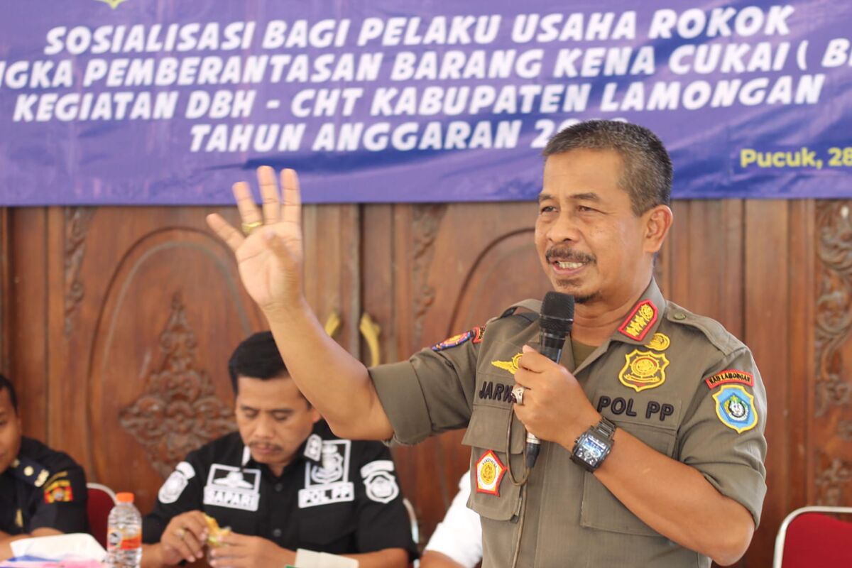 “Dengan adanya sosialisasi melalui kegiatan ini diharapkan dapat menjangkau masyarakat lebih luas di 27 kecamatan lamongan dan diharapkan dapat memberikan pemahaman mengenai kontribusi cukai untuk negara serta meningkatkan kesadaran masyarakat untuk tidak mengonsumsi maupun mengedarkan rokok ilegal. Sampai hari ini kita sudah melaksanakan di 20 kecamatan se-kabupaten lamongan dan sosialisasi ini akan terus berlanjut sampai akhir tahun ini,” ujar Kepala Satpol-PP kabupaten Lamongan, Jarwito, SH. Rabu, (38/09/2022).