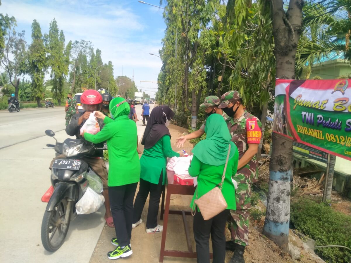 Anggota Koramil 0812/02 Deket dan Persit Ranting 2 Deket beserta pengurus gelar Jumat berkah dengan membagikan 50 nasi kotak