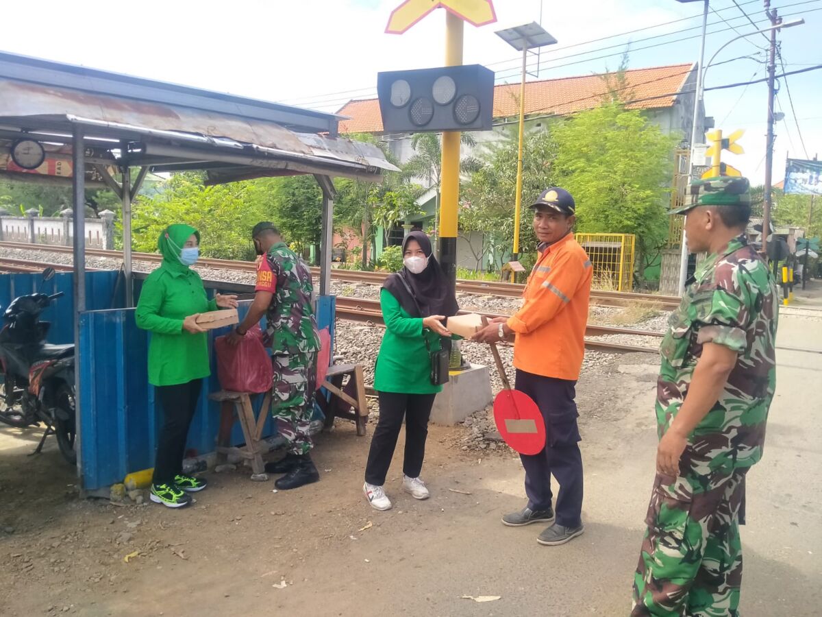 Anggota Koramil 0812/02 Deket dan Persit Ranting 2 Deket beserta pengurus gelar Jumat berkah dengan membagikan 50 nasi kotak