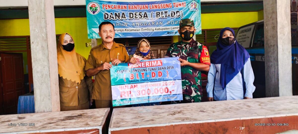 Hadir dalam kegiatan tersebut pendamping dari kecamatan Sambeng, Babinsa Serka Davit Sunarto, Serta Masyarakat Penerima BLT DD dari desa Barurejo kecamatan Sambeng