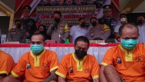 Tidak hanya itu,” 11 tersangka yang berinisial Mr(57), Nggayer(37), Seman(47), SM(32), MRS(50), NS(28) untuk kasus Curat, sedangkan Curanmor berinisial SM(36), MY(46), HR(28), MR alias Sentot(34) dan NA (27) dari berbagai kecamatan.” Terangnya.