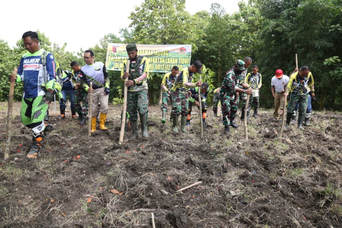 Kabar1Lamongan.com -TNI jajaran Kodim 0812 Lamongan bersama ADM Perum Perhutani KPH Mojokerto melaksanakan penanaman Jagung di lahan kosong milik TNI dan tanam ratusan pohon kayu putih di petak 16 B RPH Majenum BKPH guna meningkatkan pengelolaan kawasan hutan negara dan pemanfaatan lahan kosong bertempat di Desa Bluluk Kecamatan Bluluk Kabupaten Lamongan.