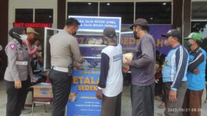 Kapolres Lamongan AKBP Yakhob Silvana Delareskha, S.I.K. M.Si. Melalui Kasat Lantas Polres Lamongan AKP Aristianto Budi Sutrisno, S.H., S.I.K., M.H. mengatakan kegiatan Etalase Sedekah ini, berbagi nasi bungkus dan sarapan bersama dalam rangka giat Polisi Humanis dan berbagi di masa pandemi serta sosialisasi kamseltibcarlantas kepada tukang becak dan tukang ojek di depan kantor Unit Gakkum Satlantas Polres Lamongan.Jum’at (21/10/2022).