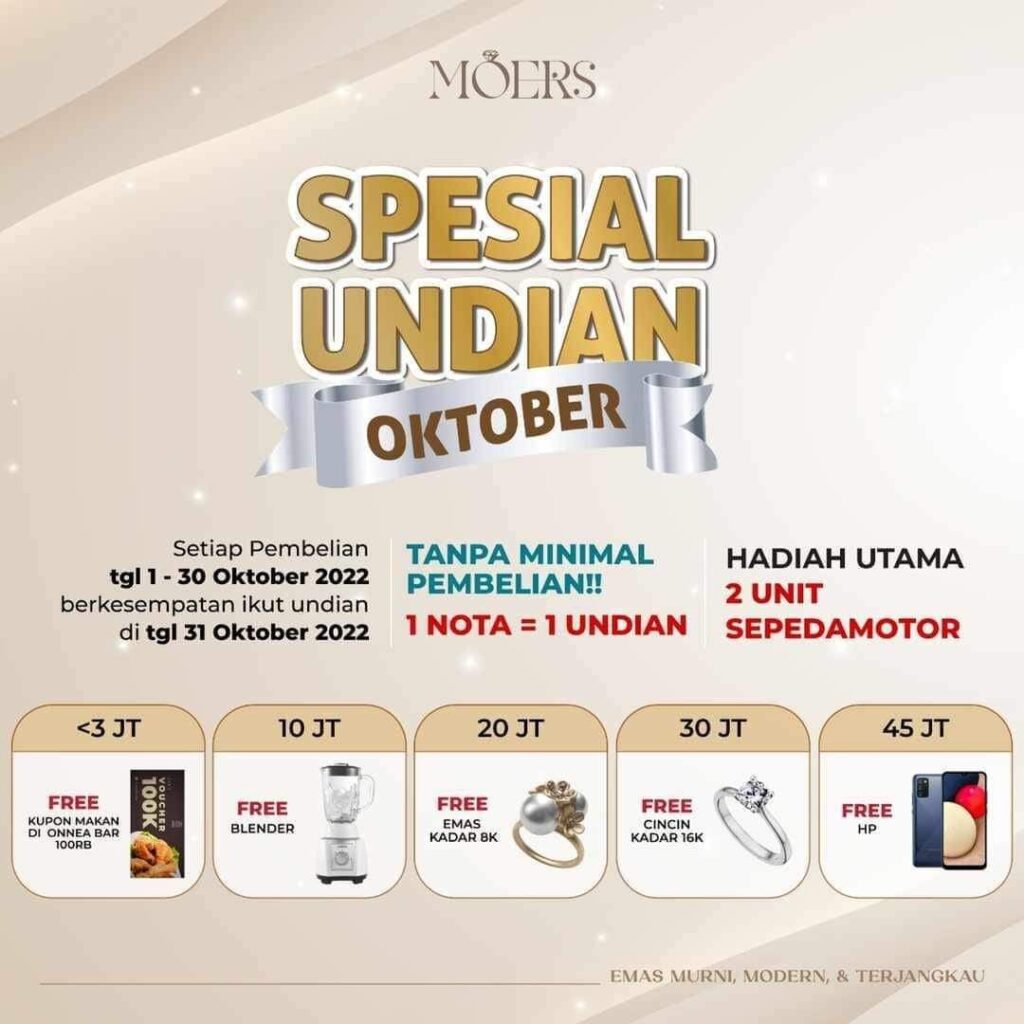Investasi Terbaik Adalah Emas, Toko emas dan perhiasan MOERS membuat promo menarik selama setiap bulan. Ada juga promo hadiah langsung, Terutama khususnya di bulan Oktober 2022 ini yang akan di undi pada tanggal 31 Oktober nanti.