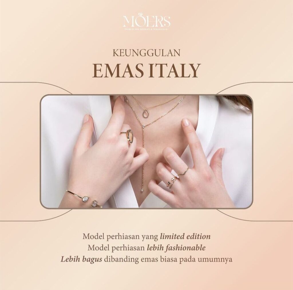 Toko emas perhiasan MOERS, satu satunya di kabupaten Lamongan yang menjual emas Italy, dengan model koleksi kalung, gelang, cincin yang tentunya kekinian mengikuti Trend model perhiasan jaman sekarang.