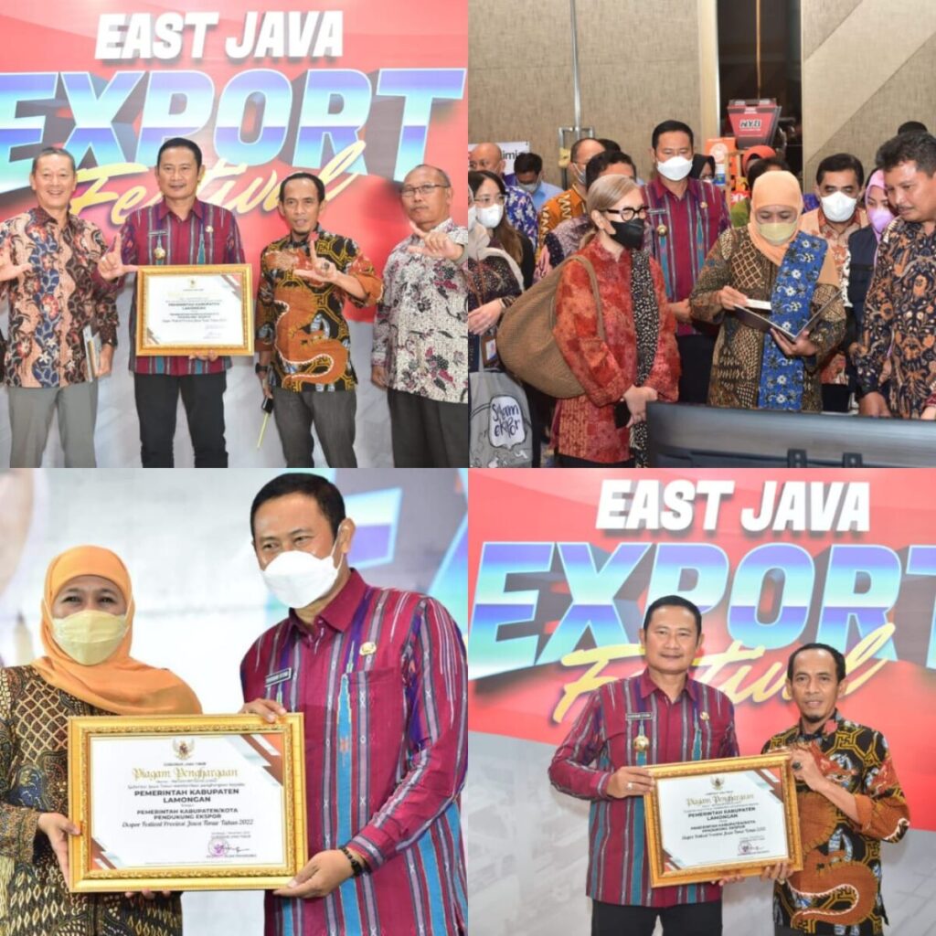 Kabar1lamongan.com-Pemkab Lamongan memperoleh Penghargaan sebagai Pemerintah Kabupaten/Kota Pendukung Ekspor dari Gubernur Jatim Khofifah Indar Parawansa, dalam kegiatan Ekspor Festival Provinsi Jawa Timur Tahun 2022 di Surabaya