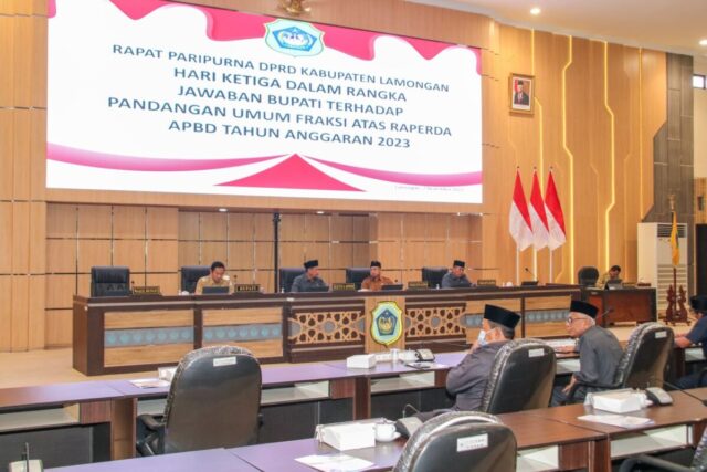 Kabar1lamongan.com – Bupati Lamongan Yuhronur Efendi menyampaikan Jawaban Eksekutif atas Pandangan Umum Fraksi DPRD terhadap rancangan APBD Kabupaten Lamongan Tahun Anggaran 2023. Jawaban tersebut disampaikan Pak Yes dalam Rapat Paripurna di Ruang Rapat Paripurna DPRD, Senin (7/11). Sebelumnya telah disampaikan berbagai pandangan, masukan dan saran ketujuh fraksi DPRD Kabupaten pada lusa lalu.