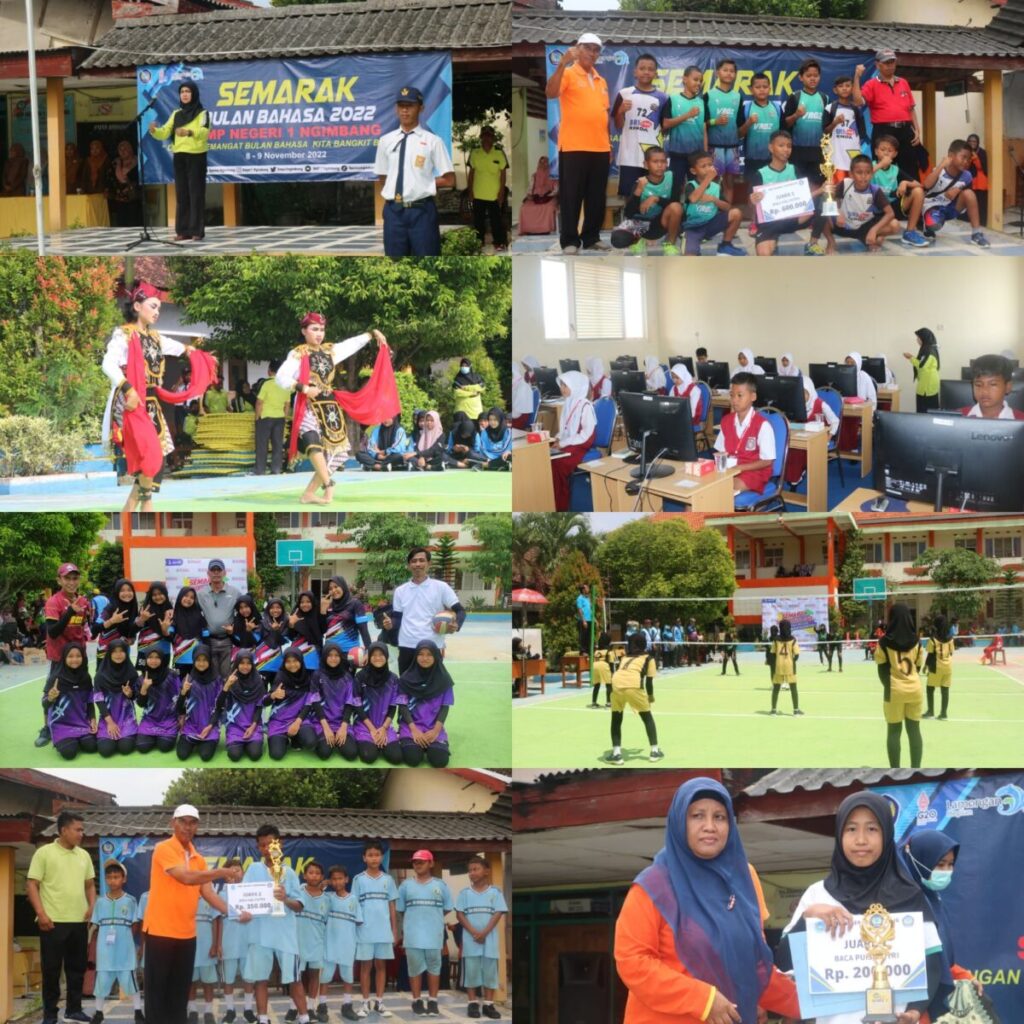 “Kami ucapkan selamat atas prestasi yang raih oleh peserta perlombaan dalam rangka bulan bahasa yang diselenggarakan oleh SMPN 1 Ngimbang, saya sangat berterima kasih kepada seluruh guru atas dukungan dan antusias para kontingen dari SD sekecamatan Ngimbang dan juga Sambeng, ini sangat luar bisa sekali, harapan kami semoga kerjasama ini terus terjalin, siswa-siswi kelas 6 nanti bisa melanjukan pendidikannya di SMPN 1 Ngimbang. Kegiatan seperti ini InsyaAllah akan kami gelar setiap tahun yang nantinya bisa menggali bakat dan minat anak-anak. Kami juga memohon maaf apabila kami selaku penyelenggara ada kekurangan tempat, fasilitas dan juga soal unggorampen atau sesuguhan yang kurang pas di hati”. Kata sambutan Bapak Tutut, S.Pd, M.MPd selaku kepala SMP Negeri 1 Ngimbang dalam upacara penutupan perlombaan bulan bahasa.