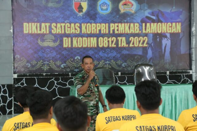 Kabar1lamongan.com – Kodim 0812/Lamongan bekerja sama dengan Pemkab Lamongan menyelenggarakan Diklat Satgas Korpri Tahun 2022 yang diselenggarakan di Makodim 0812/Lamongan, Jumat (25/11/2022).