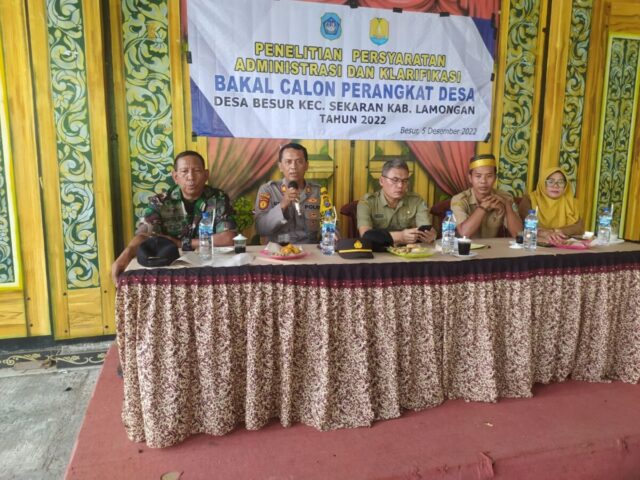 Kabar1lamongan.com – Kapolsek bersama Forkopimcam melaksanakan penelitian persyaratan administrasi dan klarifikasi bakal calon perangkat Desa Besur kecamatan sekaran kabupaten lamongan dengan 7 peserta bertempat di balai desa Besur.
