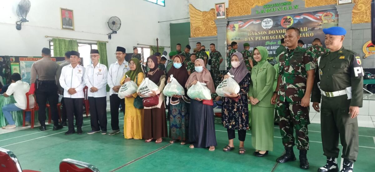 Pembagian Paket Sembako dan Vitamin Warnai Peringatan HUT Kodam V/Brawijaya dan HJK TNI AD di kodim 0812 Lamongan