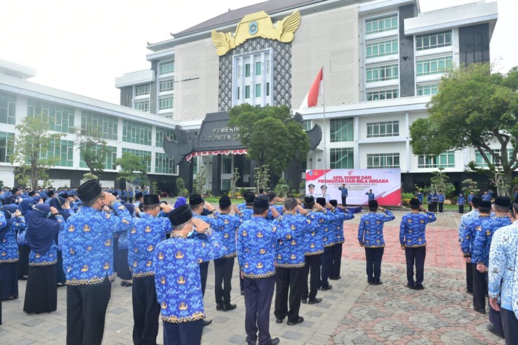Kabar1lamongan.com – Hari Bela Negara (HBN) yang diperingati dengan tujuan mengenang peristiwa Agresi Militer Belanda II pada 19 Desember 1948, Senin (19/12) oleh Pemerintah Kabupaten Lamongan diperingati dengan pelaksanaan Apel Korpri dan Peringatan Hari Bela Negara Ke-74 Tahun 2022, di Halaman Gedung Pemerintah Daerah Kabupaten Lamongan.