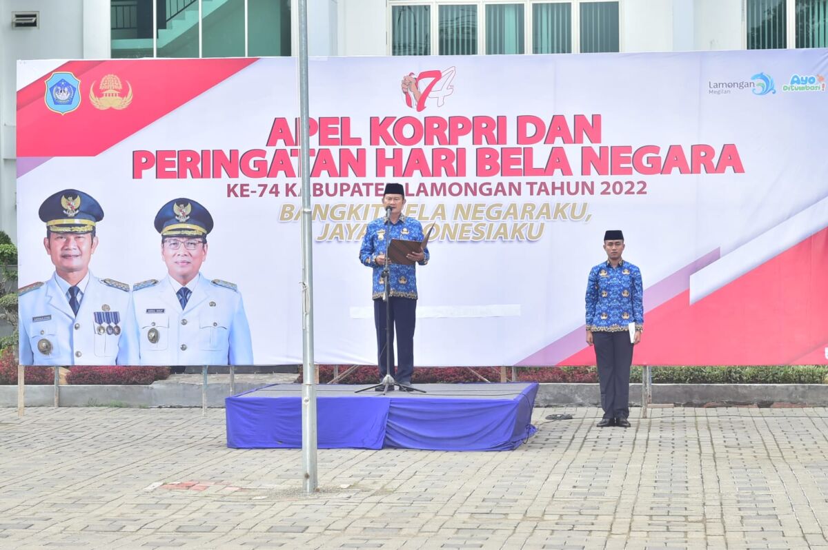 Kabar1lamongan.com – Hari Bela Negara (HBN) yang diperingati dengan tujuan mengenang peristiwa Agresi Militer Belanda II pada 19 Desember 1948, Senin (19/12) oleh Pemerintah Kabupaten Lamongan diperingati dengan pelaksanaan Apel Korpri dan Peringatan Hari Bela Negara Ke-74 Tahun 2022, di Halaman Gedung Pemerintah Daerah Kabupaten Lamongan.