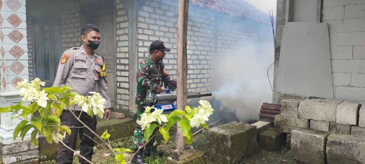 Suatu cara dalam pencegahan sejak dini penyakit Demam berdarah dengue (DBD) dan pencegahan varian baru virus covid 19, Babinsa, Bhabinkamtibmas dan tim relawan melakukan penyemprotan fogging dan cairan disinfektan di Desa Sumberbanjar Kecamatan Bluluk Kabupaten Lamongan. Selasa (27/12/2022).